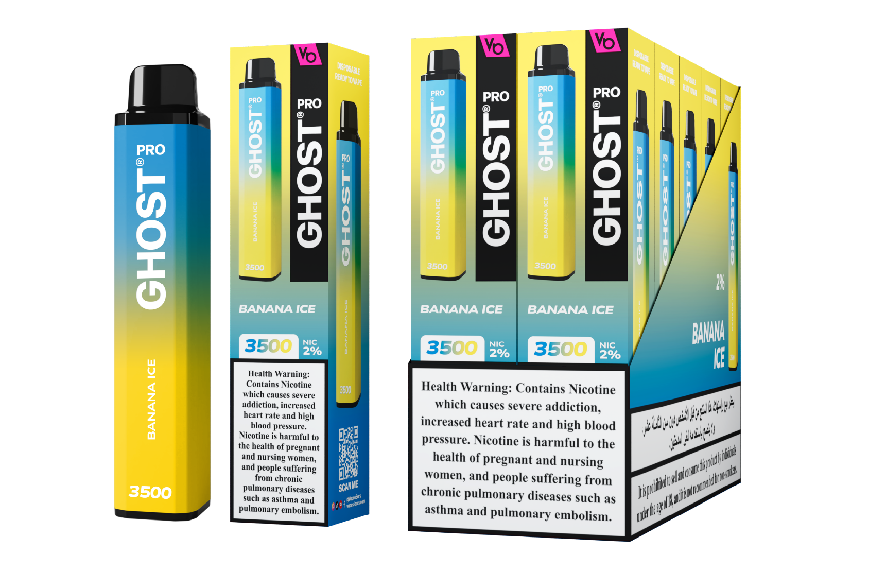 Ghost Pro Banana Ice Vapes Bars Disposable Vape 3500 Puffs 2%