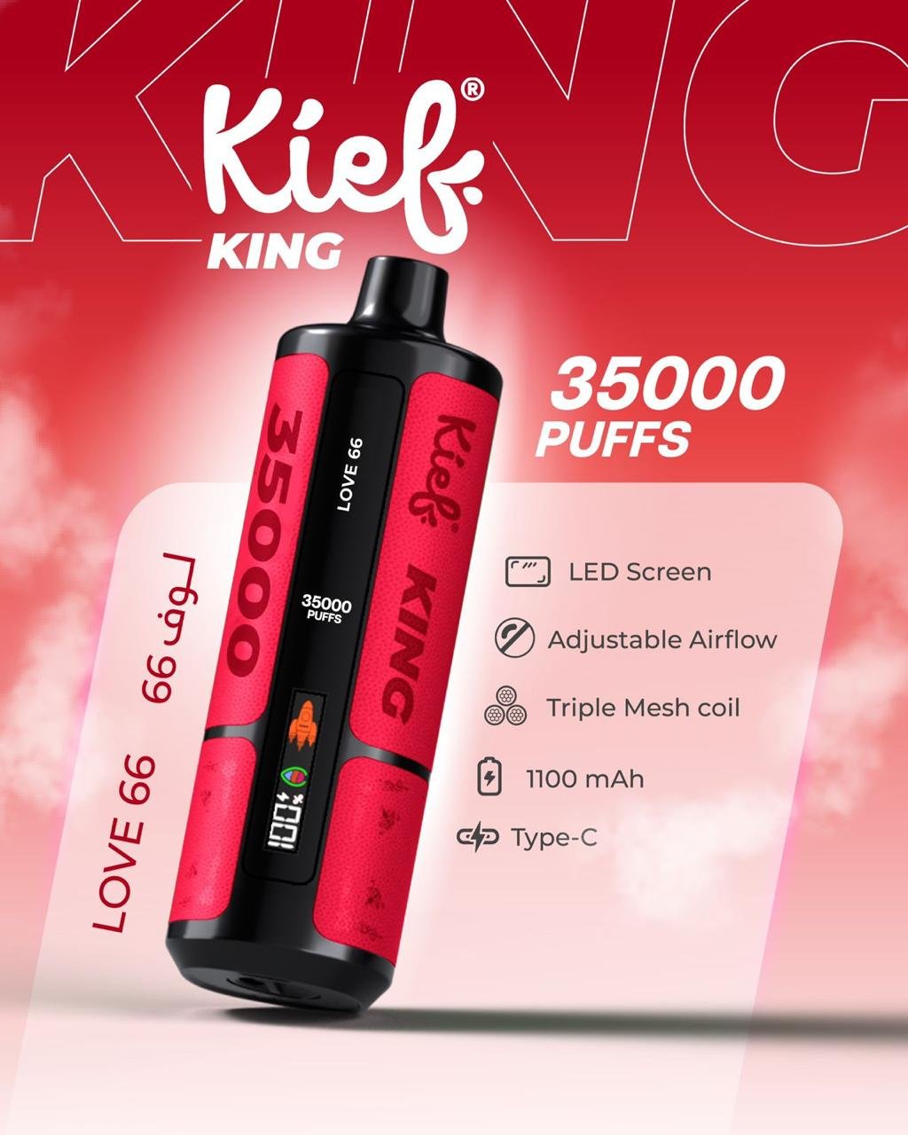 Kief King 35000 Puffs Disposable Vape 3mg – Love 66 Long-Lasting Disposable Vape UAE