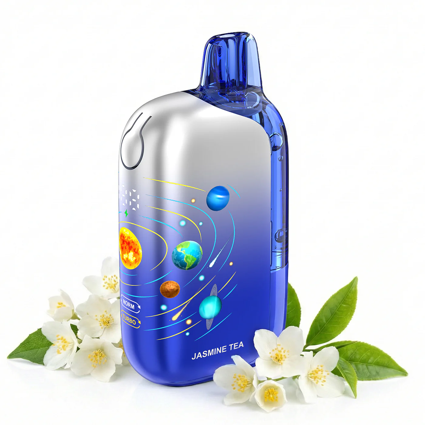 The advanced 3D curved display clearly shows battery level and vaping mode. Moreover, the planet-style lighting effects add a modern visual touch. You can switch between Norm Mode for longer usage or Turbo Mode for stronger flavor intensity and nicotine satisfaction.